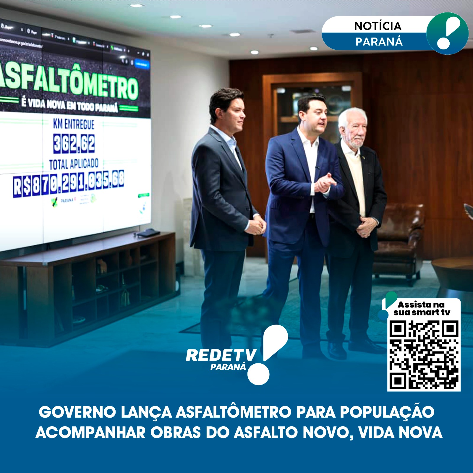 Pelo site https://www.parana.pr.gov.br/lp/asfaltonovo é possível conferir a quilometragem de ruas que já foram pavimentadas e o valor investido nessas obras. Até o momento, o painel mostra que já são 362,77 quilômetros de ruas asfaltadas, com R$ 870,6 milhões já aplicados.